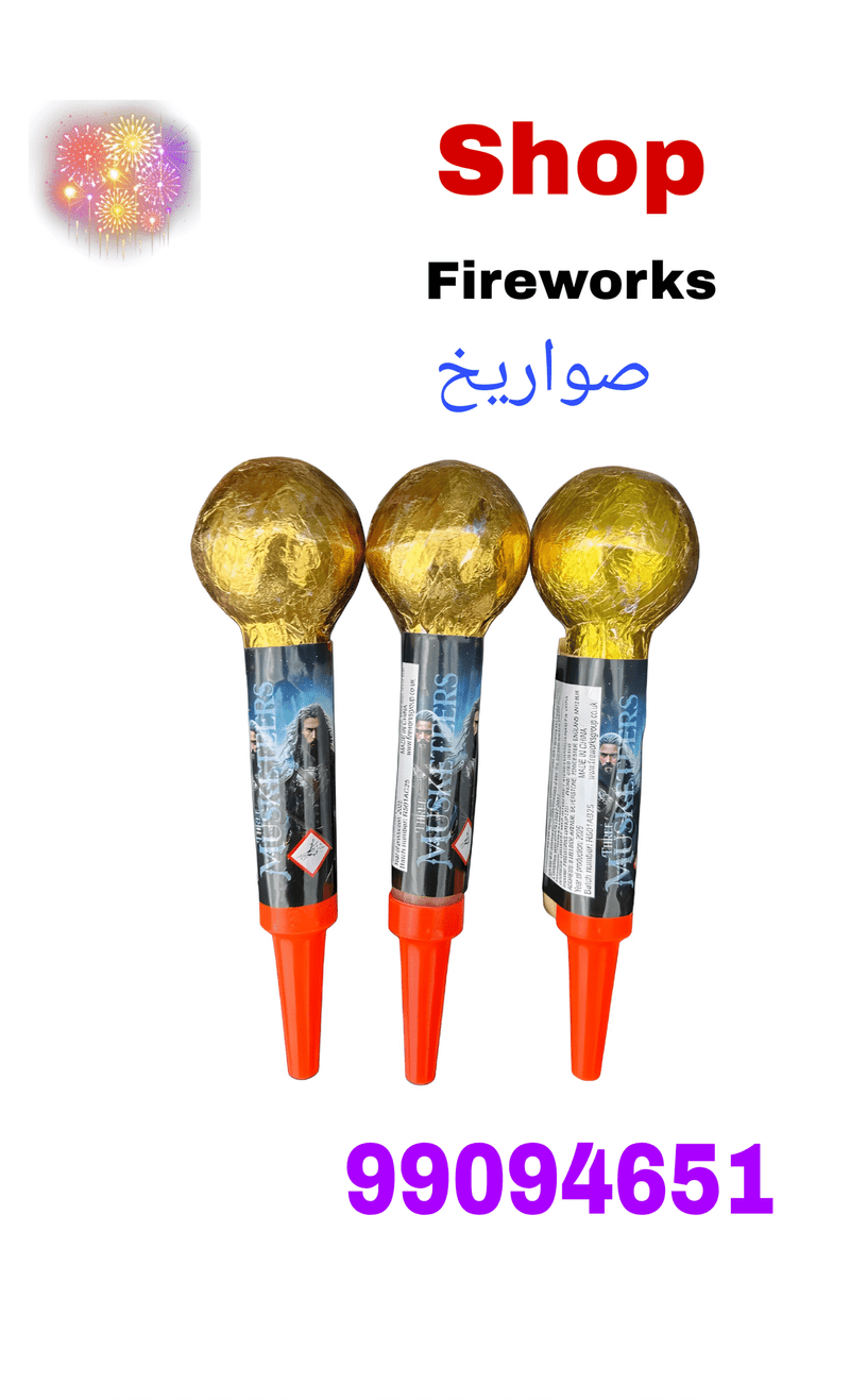 صاروخ كرة 3 بوصة = حلقات مزدوجة حمراء وزرقاء ومدقة نخيل ذهبية